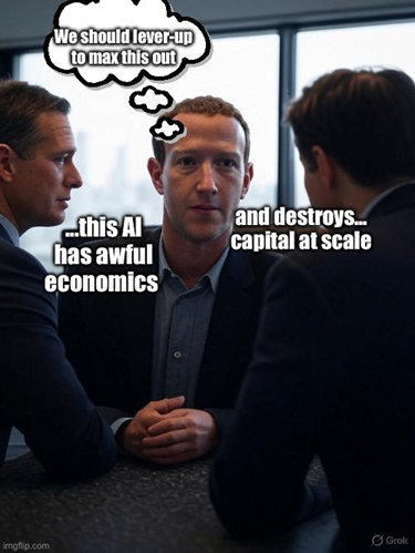 The economics of the current AI buildout don’t work. But the system can keep funding it for years because (1) sunk costs are enormous, (2) power contracts are locked in, and (3) the illusion of growth supports asset prices that fund the next round of spending.